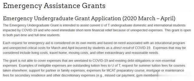 申请信息页面: https://future.utoronto.ca/finances/financial-aid/emergency-assistance-grants/