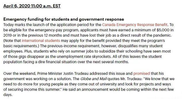 疫情中的温暖:加拿大留学生可申请COVID-19紧急救助金