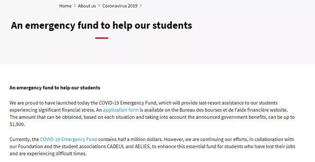 魁北克大学也有专门的紧急救助金计划,国际生可以申请。