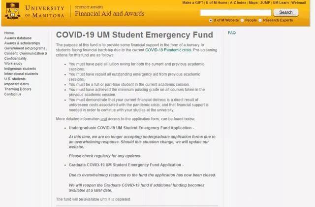 申请页面: http://umanitoba.ca/student/fin_awards/pandemic-relief-fund.html